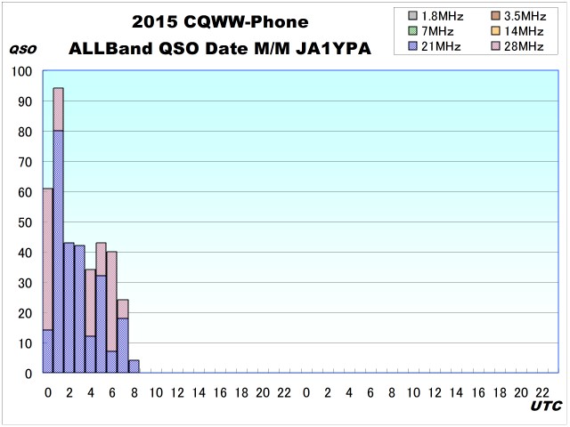 アンプを入れ替えてから始めて運用したが十分な準備が出来なかったし、使い方も良く分からないままだったので、特に目立った変化は無かった。スタートした時から北米が開けいつものようにこのコンテストの時はにぎやかで、バンドの下から中央付近までは出る隙間が無かった。21.400付近まで上がって多少静かな場所を探して2,3回CQを出すとパラパラと呼ばれ続け、短時間ではあったが久しぶりのコンテストが楽しめた。まともに使えるバンドが21Mと28Mだったので、21Mの設備が使えることを確認して菊池さんと交代した。
