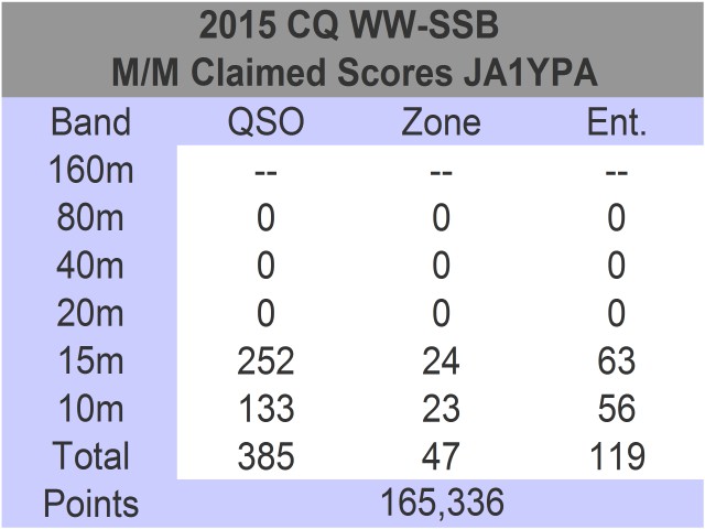 積極的にはPRしなかったために、参加者は菊池さんと宋楽さんと自分の3名だった。昨年のCQWW-以降、まったくコンテストから遠ざかっていた。設備の方もアンテナ本体はどうにか使える状態にあるものの、あちこちに不具合が発生して使用できないものも多かった。